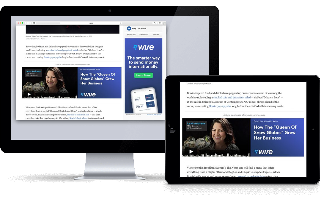As part of this, we worked with the NPM Creative team to produce a Brand Soundscape for Wise. This was the most custom sponsorship creative we’ve produced so far, and it was the first time that our audio ads featured one of Wise’s customers.