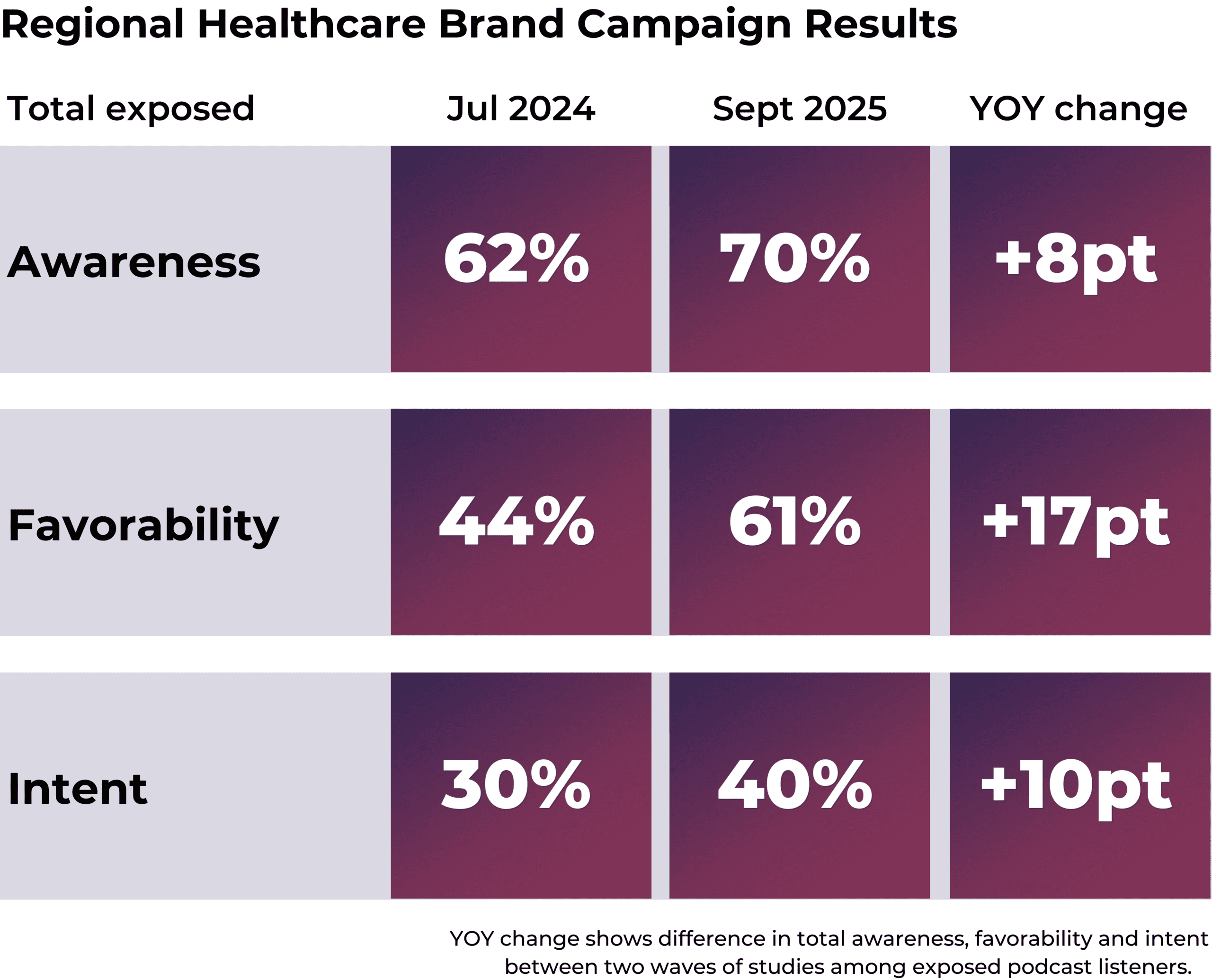 A cloud security brand achieved an awareness lift more than double the control, and an established B2B software company recorded the largest intent-to-purchase lift across all 2025 Veritonic studies.