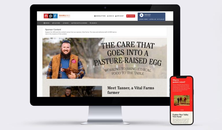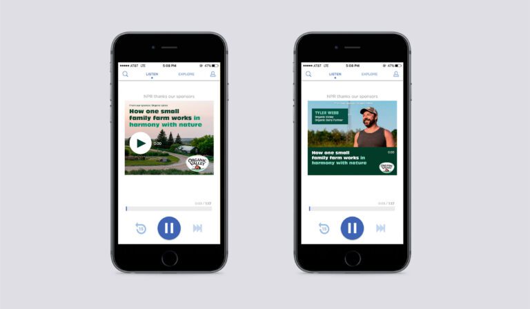 Brand Soundscapes are NPM’s flagship custom storytelling product. These unscripted, ~3 minute audio stories highlight the real experiences of brand representatives or partners. Each final, scored Soundscape is owned by the sponsor, and a tailored media plan features the story in podcast mid-rolls and custom, native display units across NPR’s digital platforms.