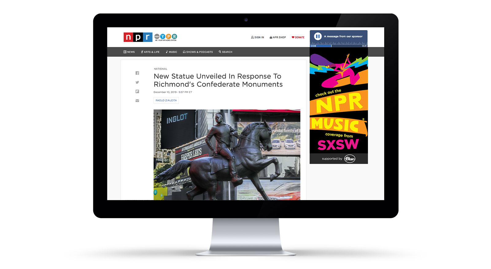 Halo Units are custom designed for each sponsor to promote a brand’s support of specific NPR content with an embedded content module for an NPR program or series. The co-branded experience engages users with the sponsor’s brand, drives additional traffic to the supported content area, and reinforces sponsor alignment with content themes.