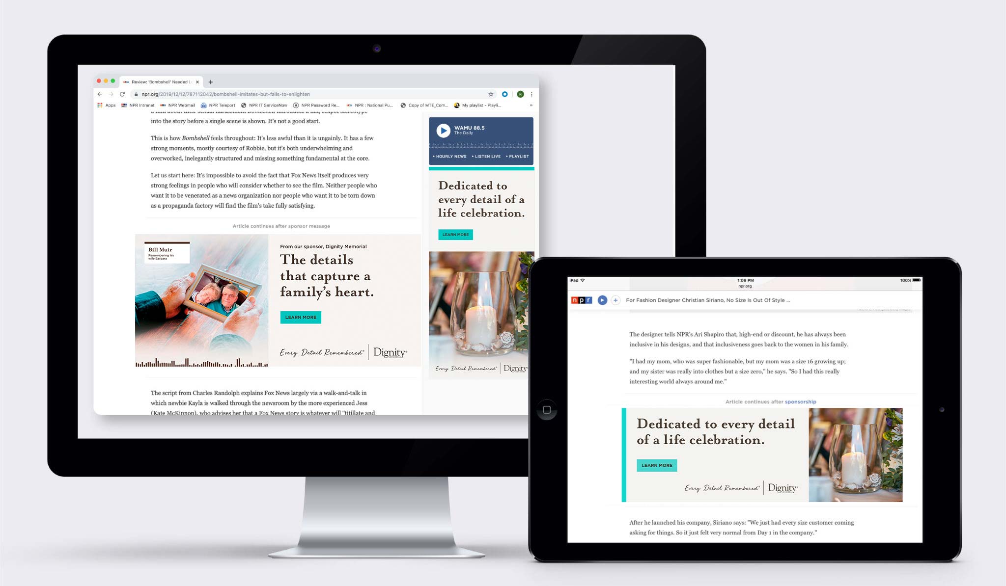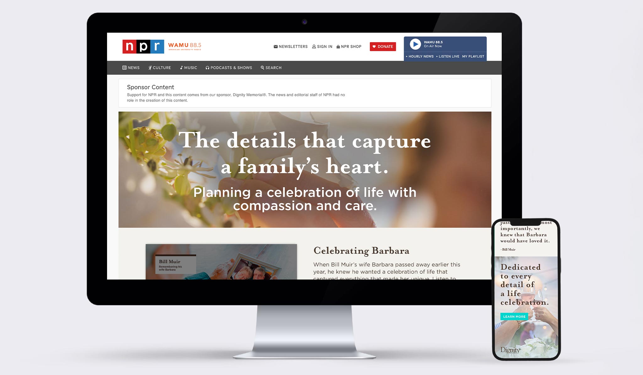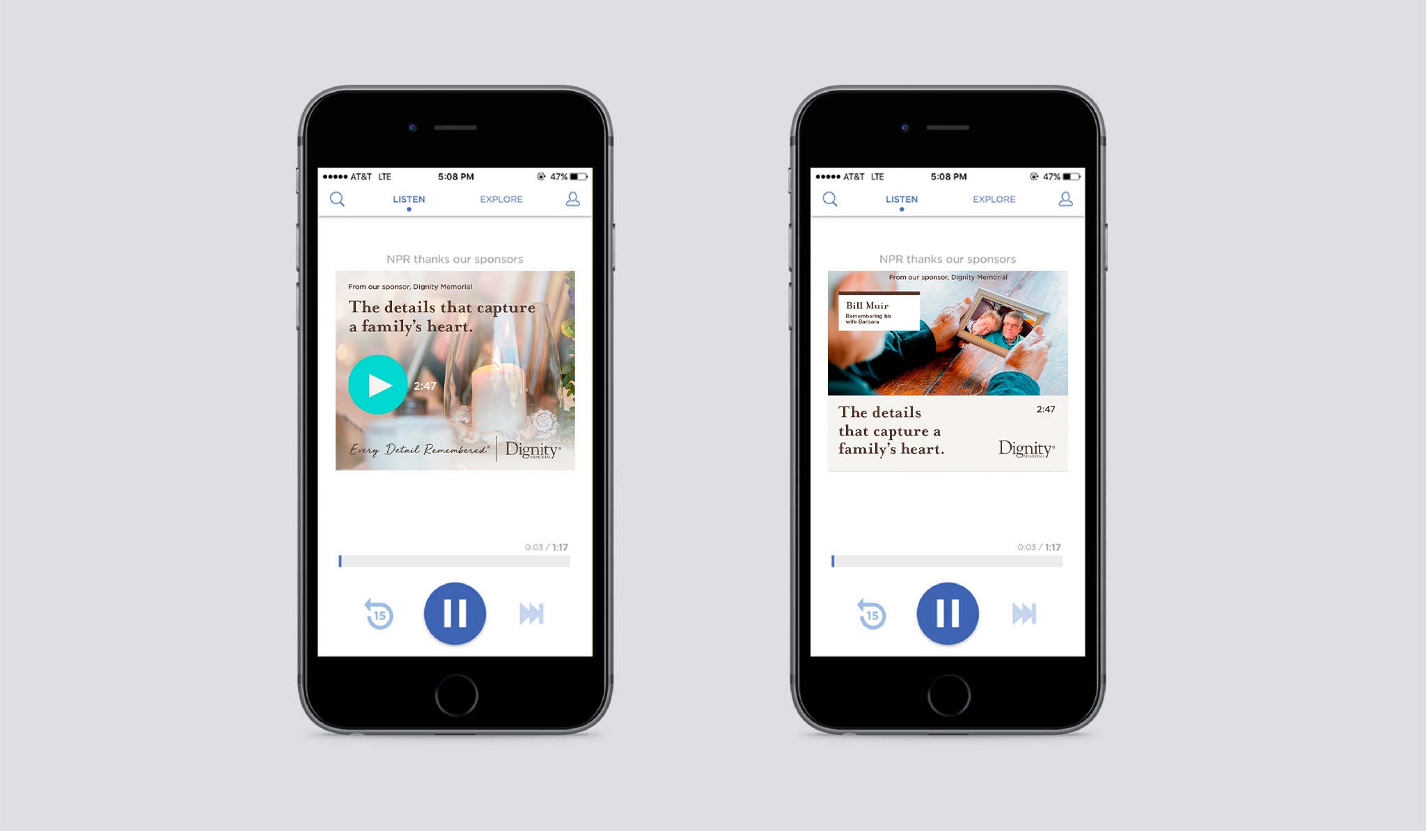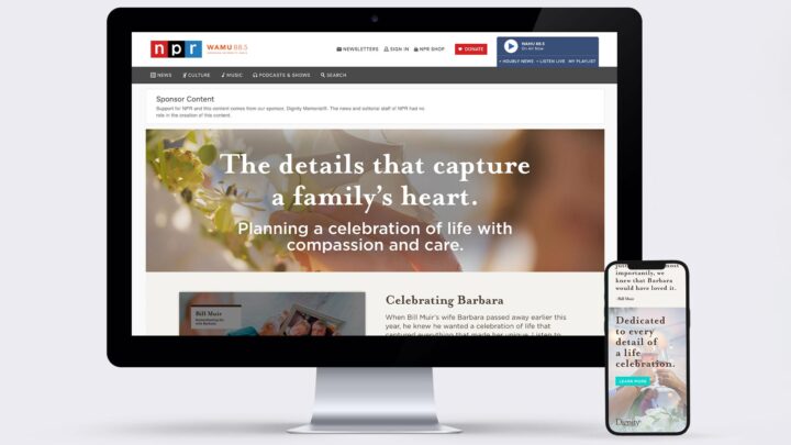 Dignity Memorial supports families in creating meaningful and personalized remembrances that celebrate their loved one’s lives. To share this mission, NPM Creative partnered with Dignity Memorial to craft a full Soundscape and custom mid-rolls, capturing the heartfelt story of a family they served.